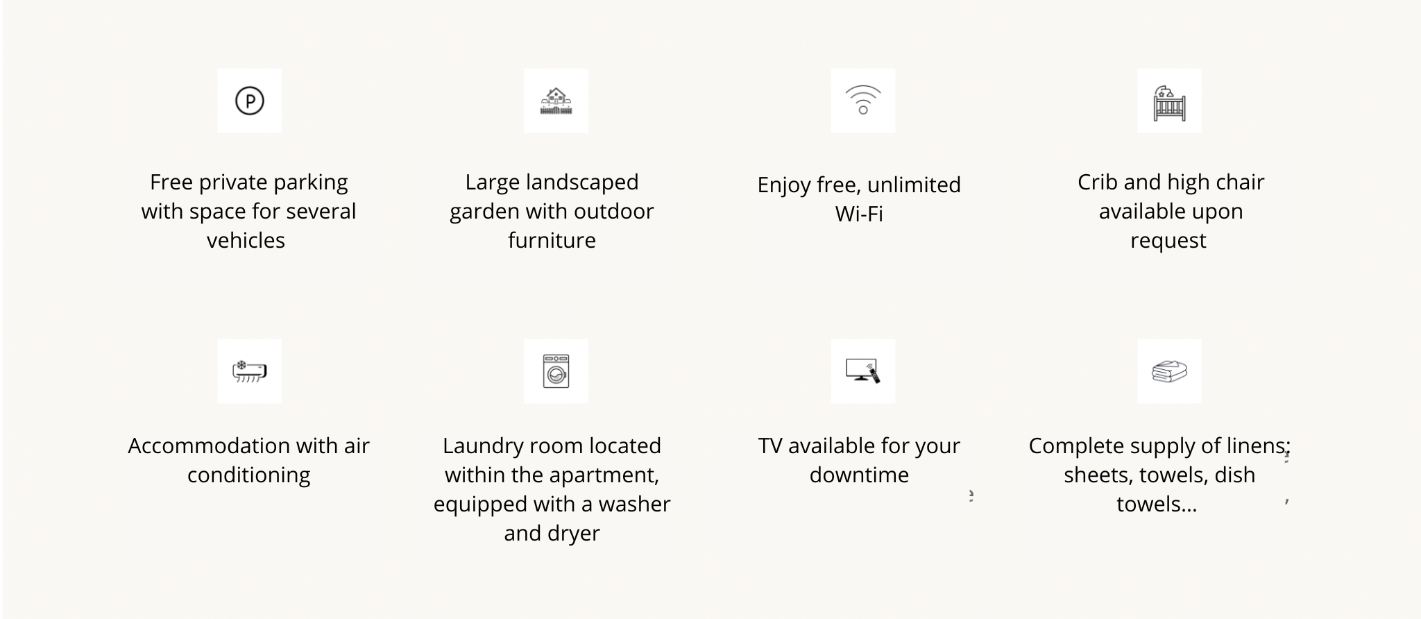 Complete supply of linens; sheets, towels, dish towels…